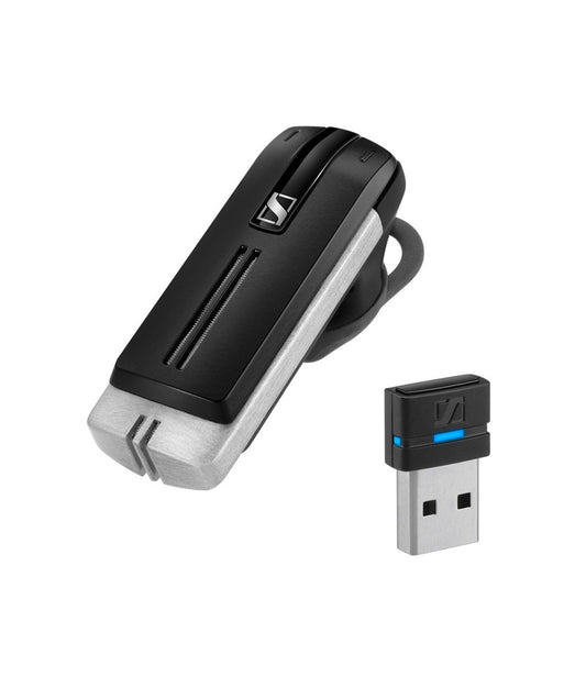 PRESENCE Grey UC Single-sided Bluetooth headset with USB dongle, carry case, 4 x ear sleeves, ear hook and USB charging cable. Optimized for Unified Communications and Certified for Skype for Business.