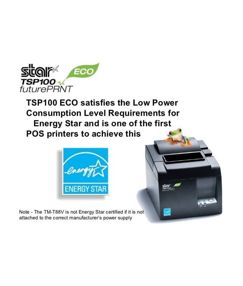 STAR TSP143IIIU ECO, Thermal Printer, Auto-cutter, Standard USB and Mfi USB Ports, Gray or White, USB Cable, Int PS